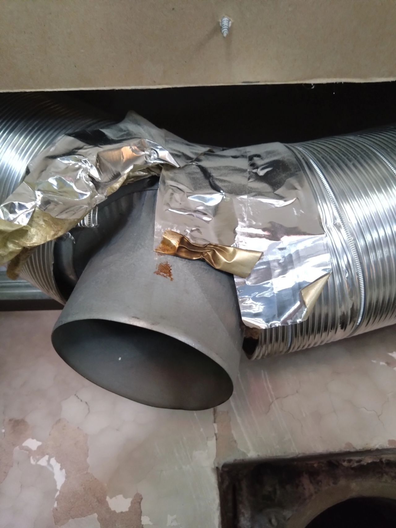 Rury aluminiowe połączone jedynie taśmą aluminiową zamiast opaskami metalowymi.