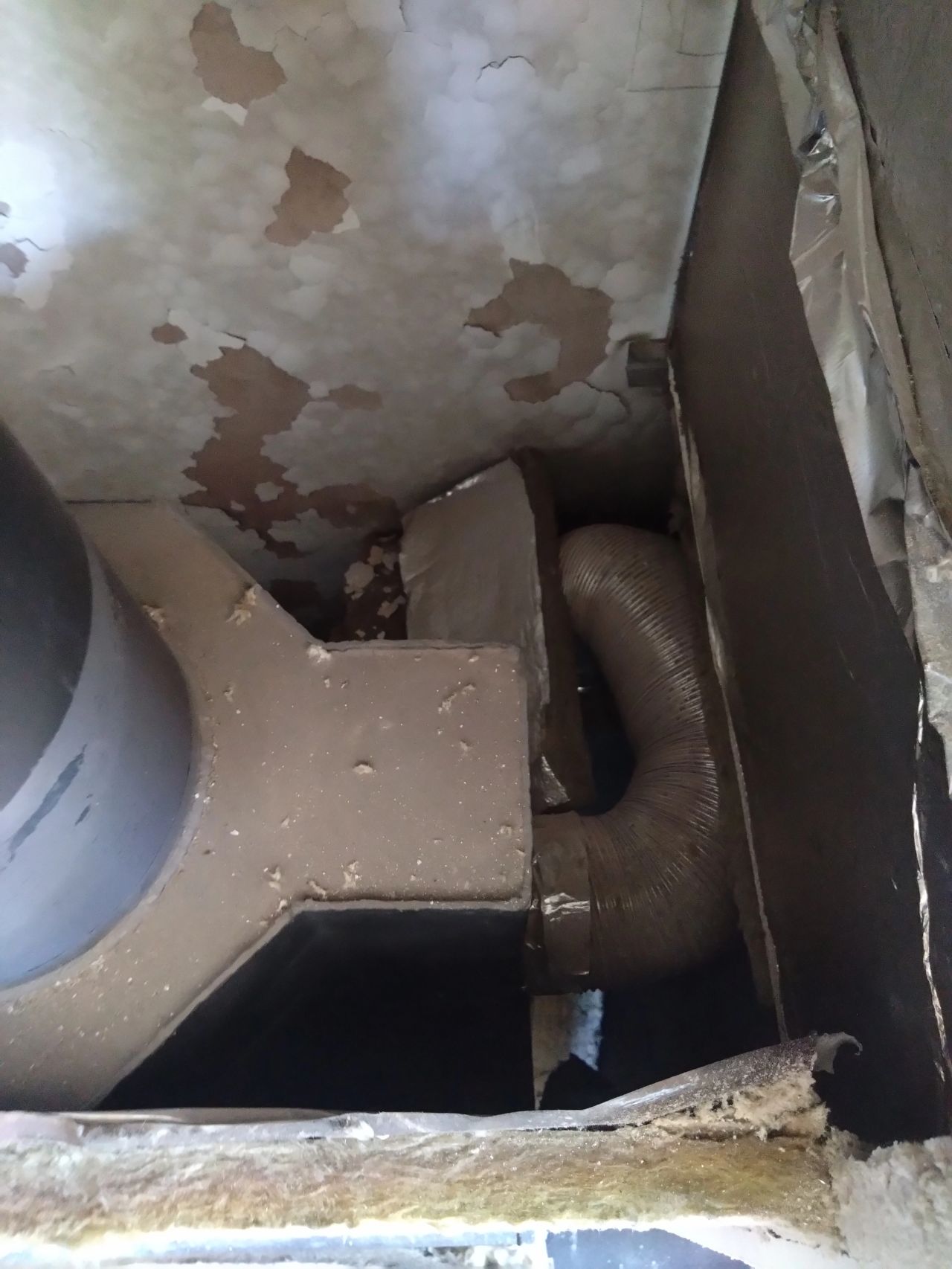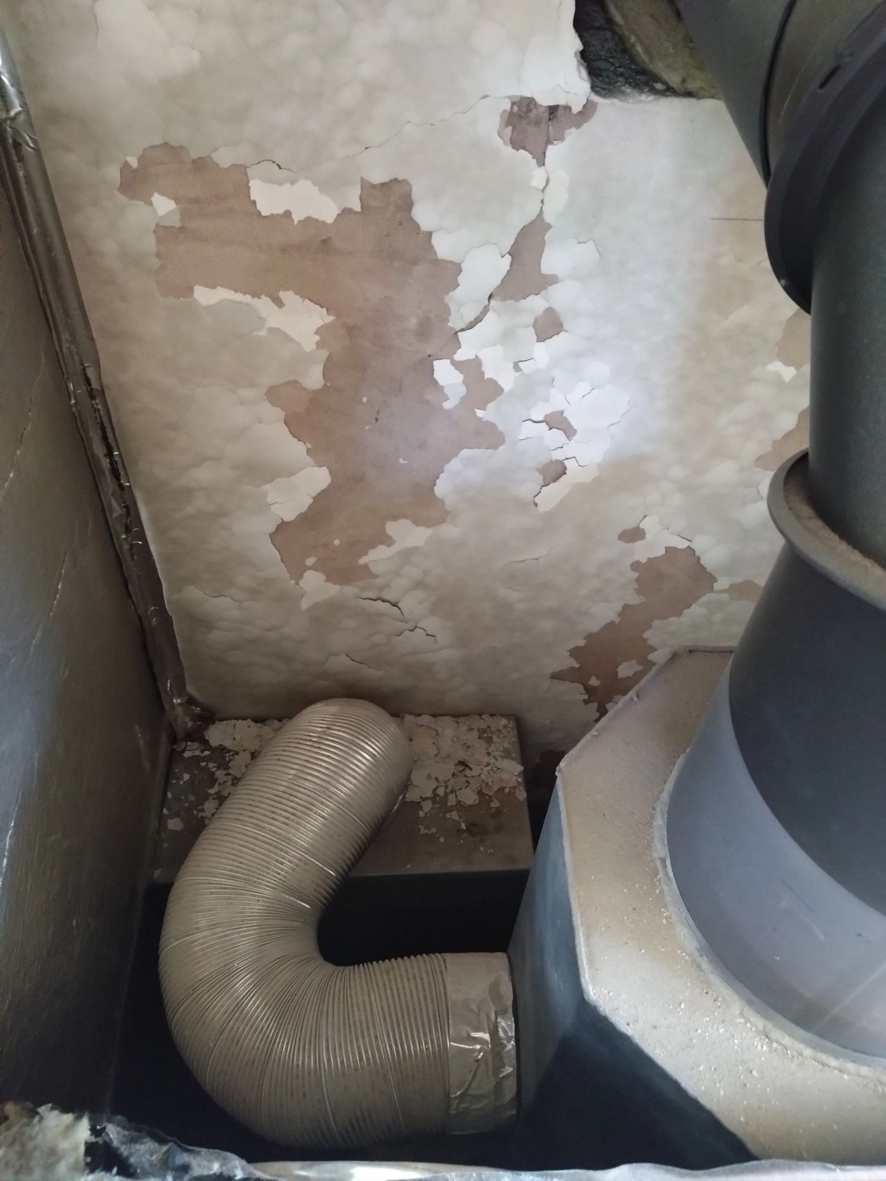 Duże elementy pośredniczące między kominkiem a rurami w fundamencie wykonawca ustawił na nie równej podłodze bez żadnego uszczelnienia. Wyprowadził też ciepłe powietrze do pomieszczeń na piętrze rurami o średnicy większej niż trójnik-co widać na zdjęciu. Powietrze z zewnątrz nie było bezpośrednio podłączone do wkładu kominkowego -na zdjęciu widać że dolot powietrza kanałem płaskim znajduje się około centymetra od kominka. Wykonanie izolacji zrobił niestarannie a ściany za kominkiem nie zaizolowalał w ogóle co jest błędem i doprowadziło do pękania i kruszenia tynku. Podsumowując, pracę wykonał nie właściwie , instalacja była nie szczelna co powodowało zmniejszenie wydajności grzewczej całej płyty legalett.